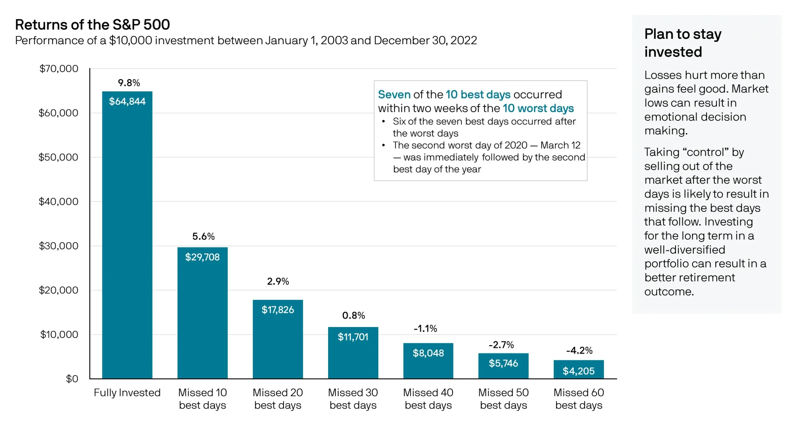 マーケットに居続けることで、ベストな日を逃さないことがリターンのカギになります。